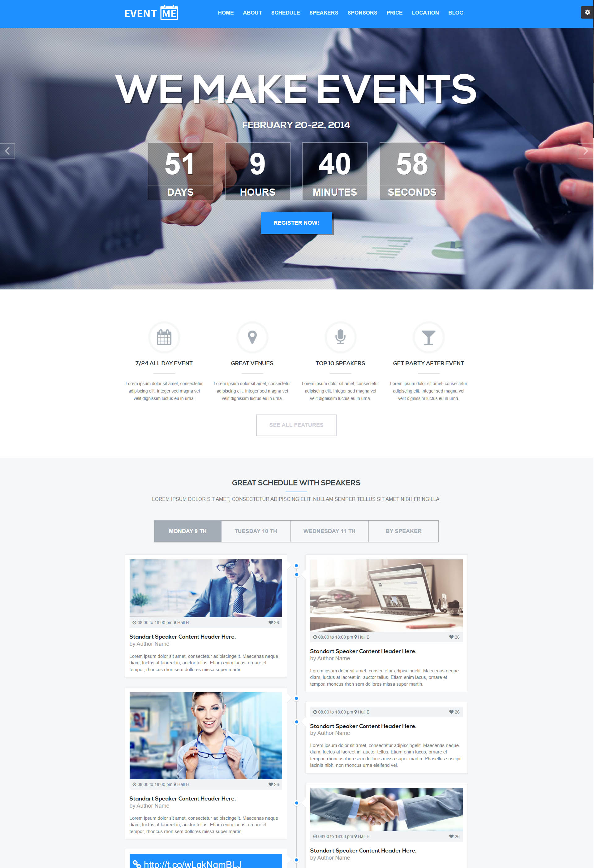 قالب متعدد الاستخدامات، يناسب الفعاليات والمؤتمرات. يتميز بسهولة التخصيص ويدعم عرض الرعاة والمتحدثين.