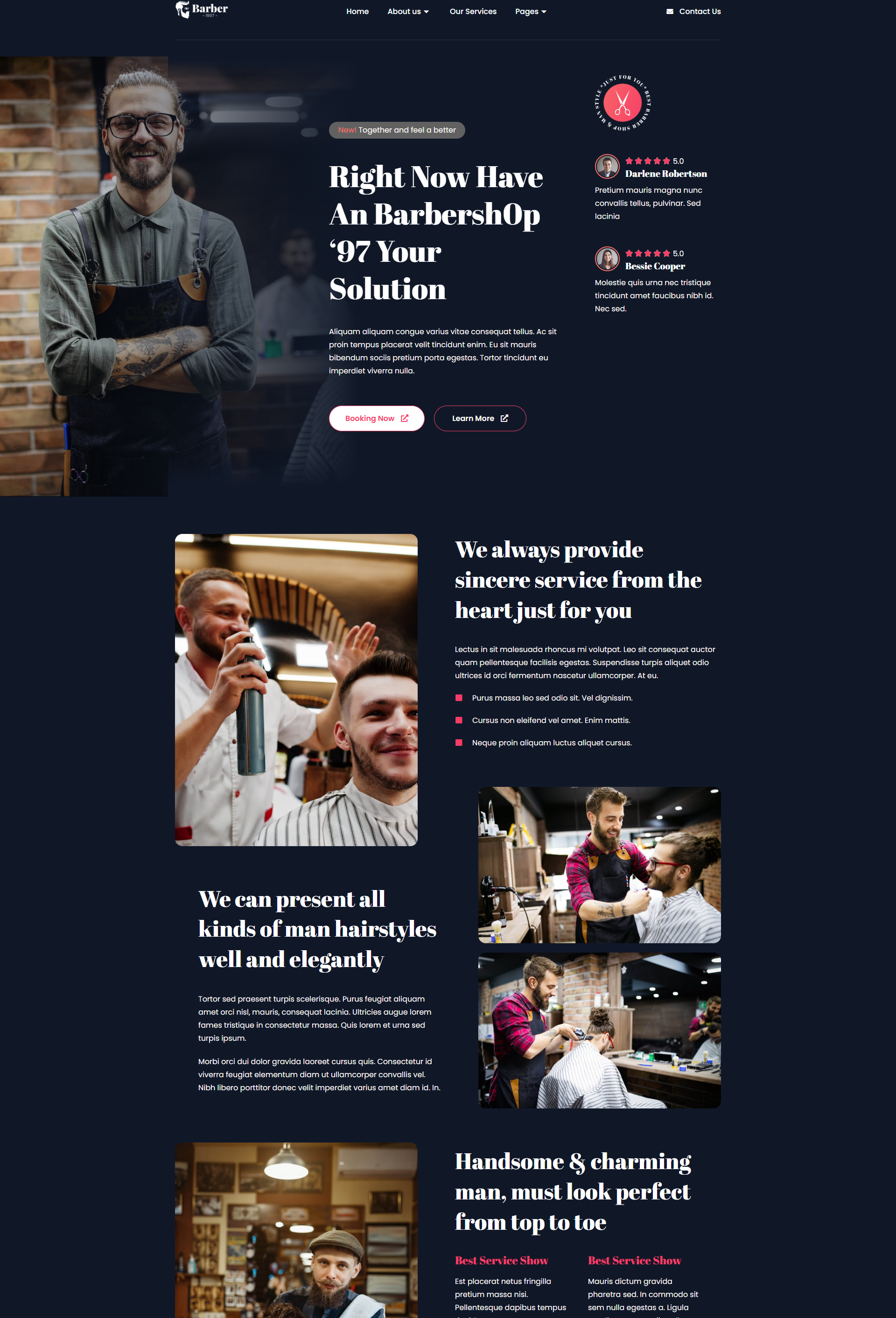 قالب مخصص لصالونات الحلاقة وخدمات الرجال.