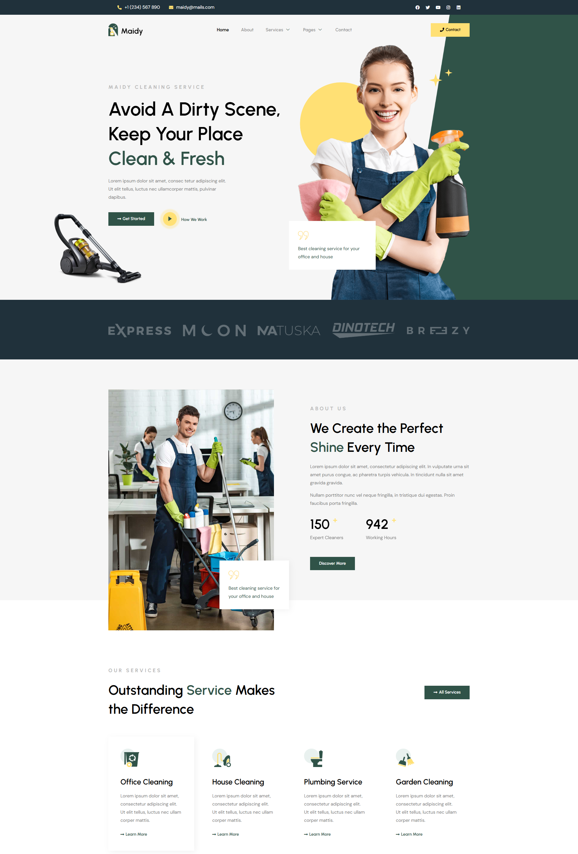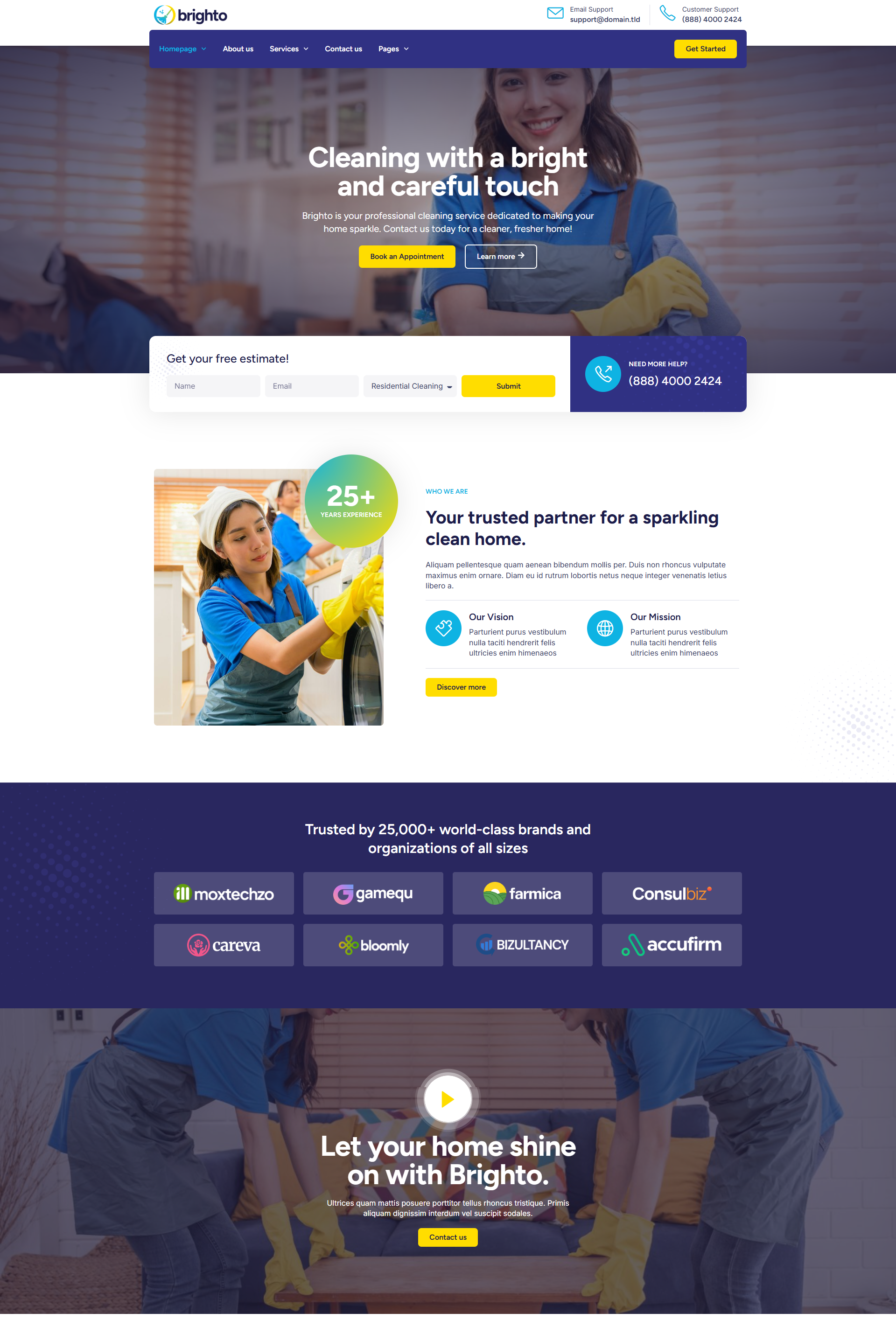 قالب مثالي لخدمات التنظيف مع واجهة سهلة الاستخدام.