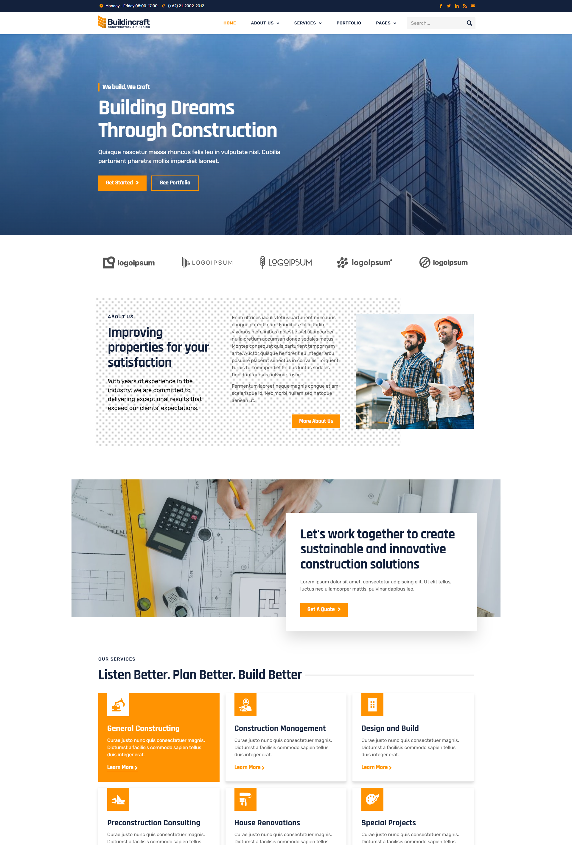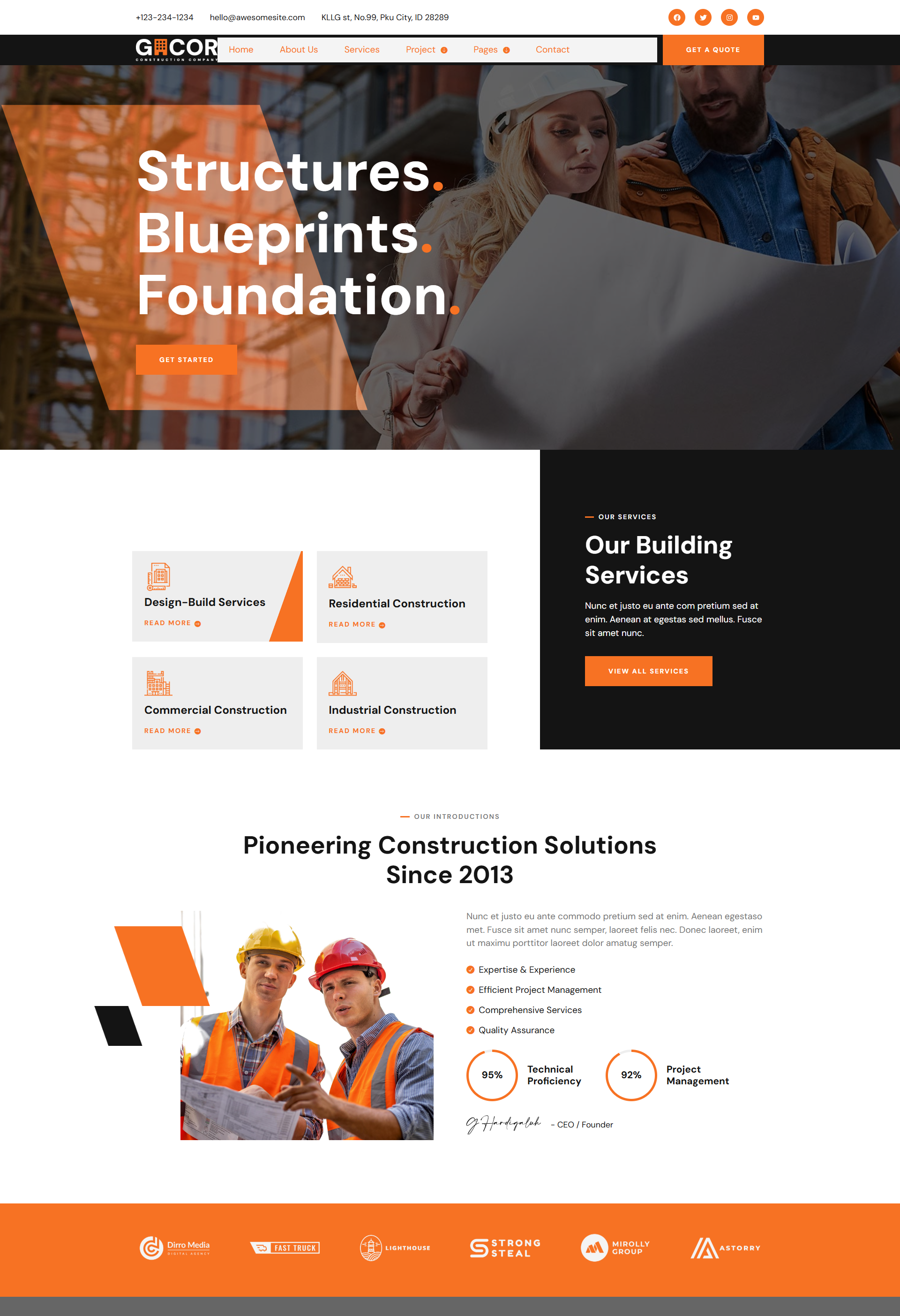 قالب أنيق مناسب لشركات التعاقدات والبناء.