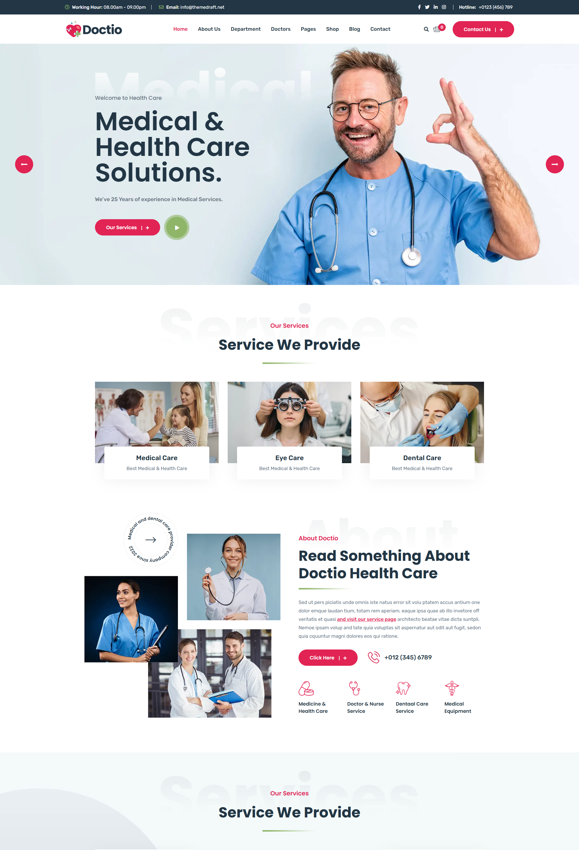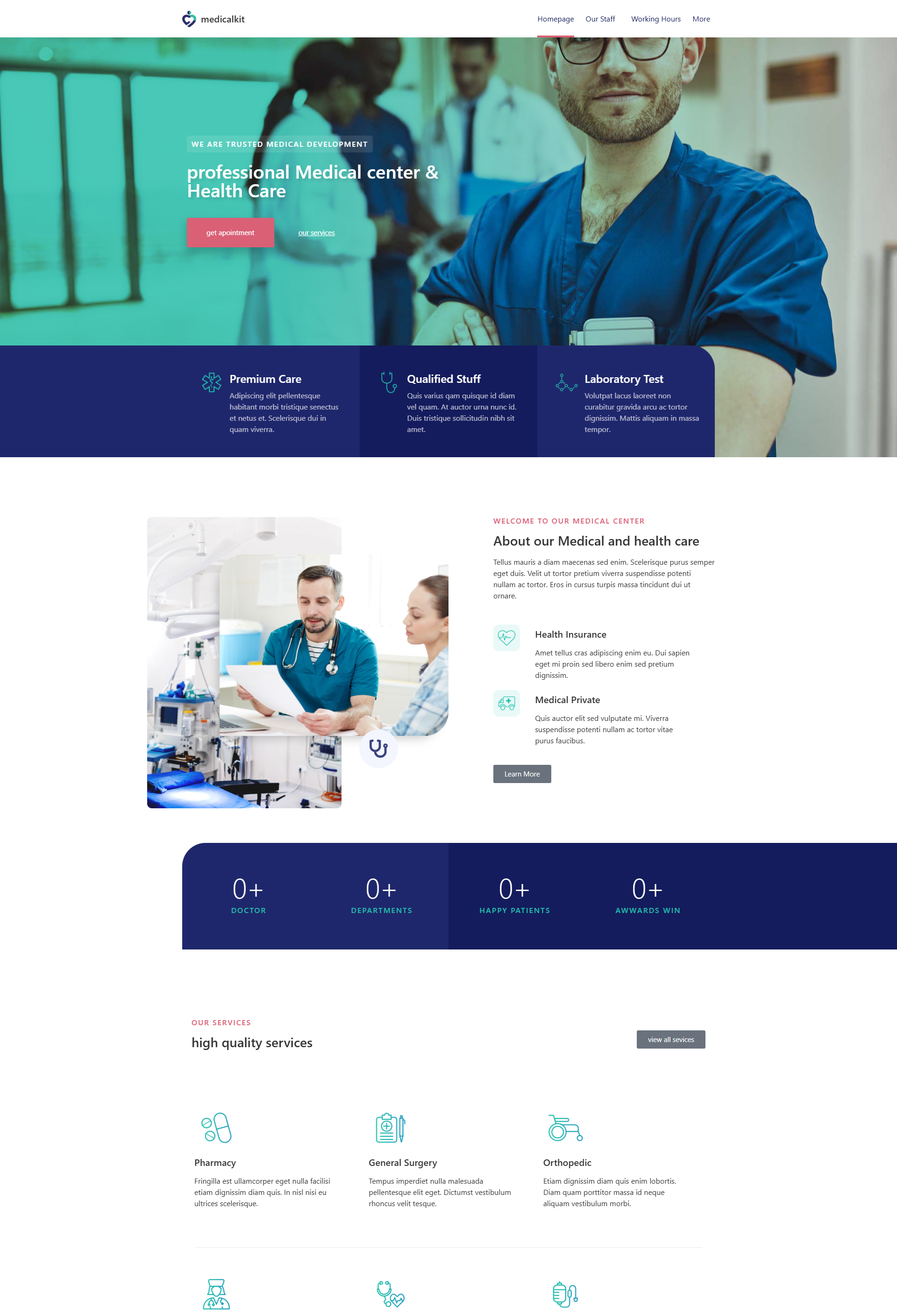قالب عصري للعيادات والمستشفيات مع ميزات متقدمة.