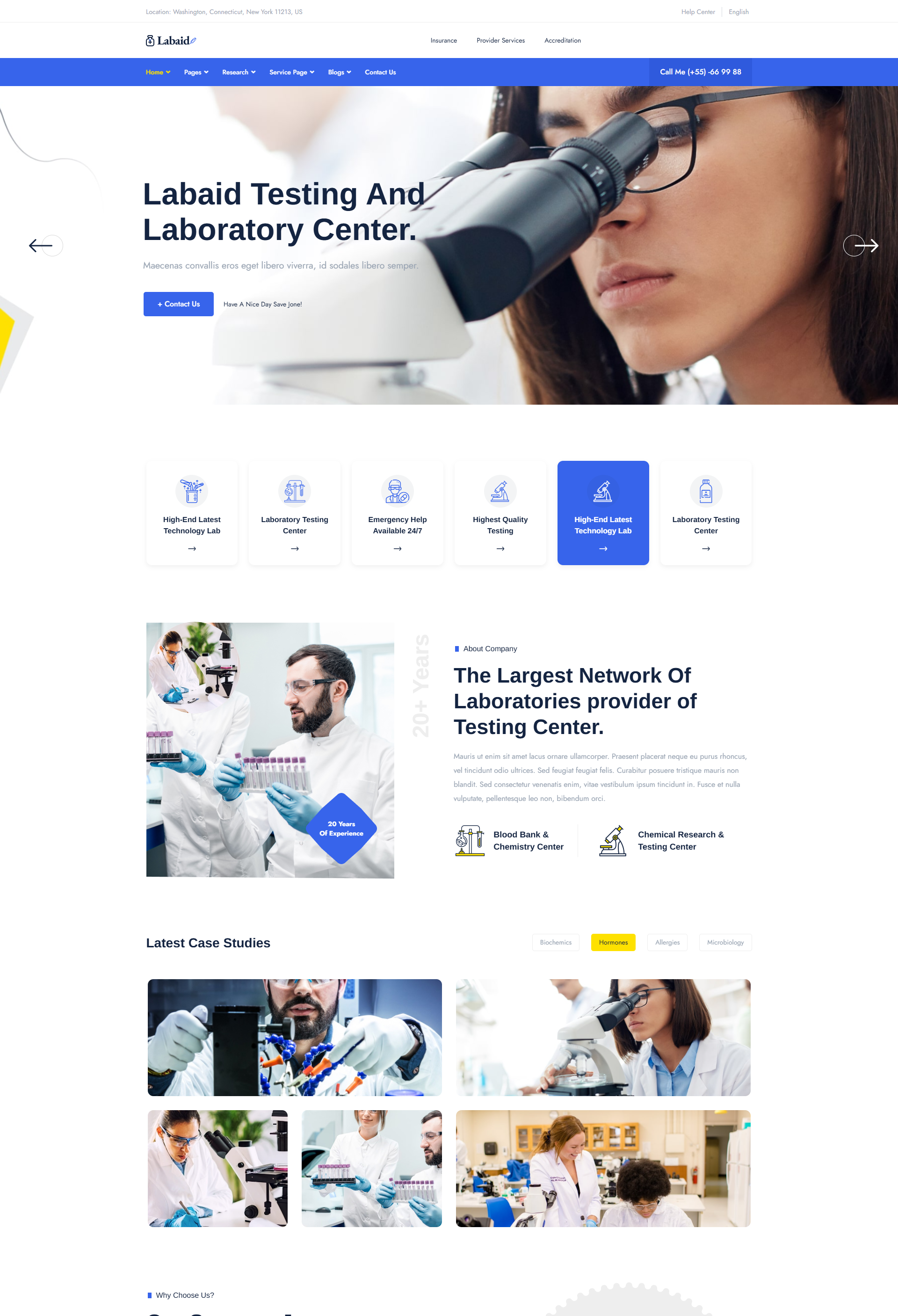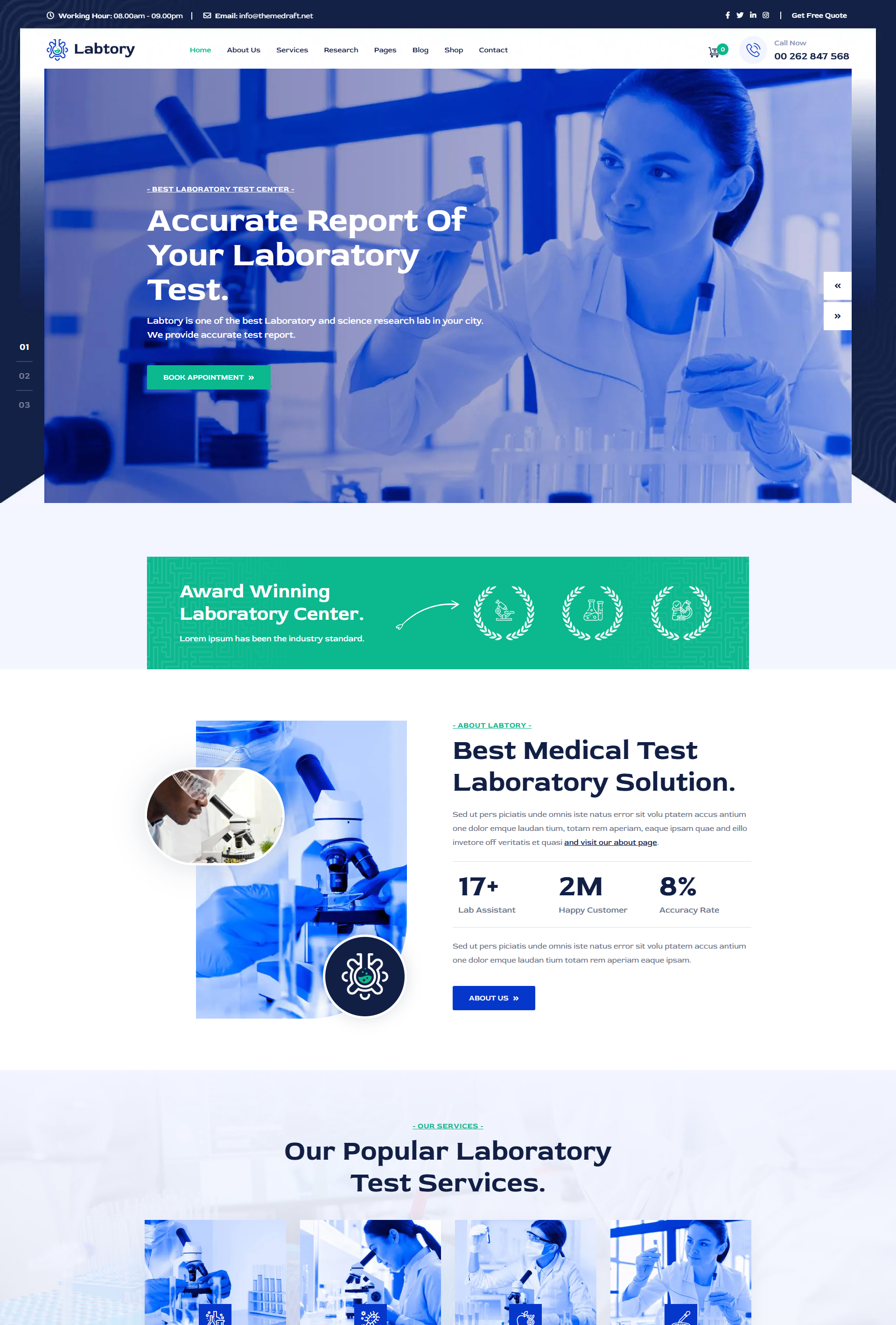 قالب مثالي للمختبرات الطبية ومراكز الأبحاث.