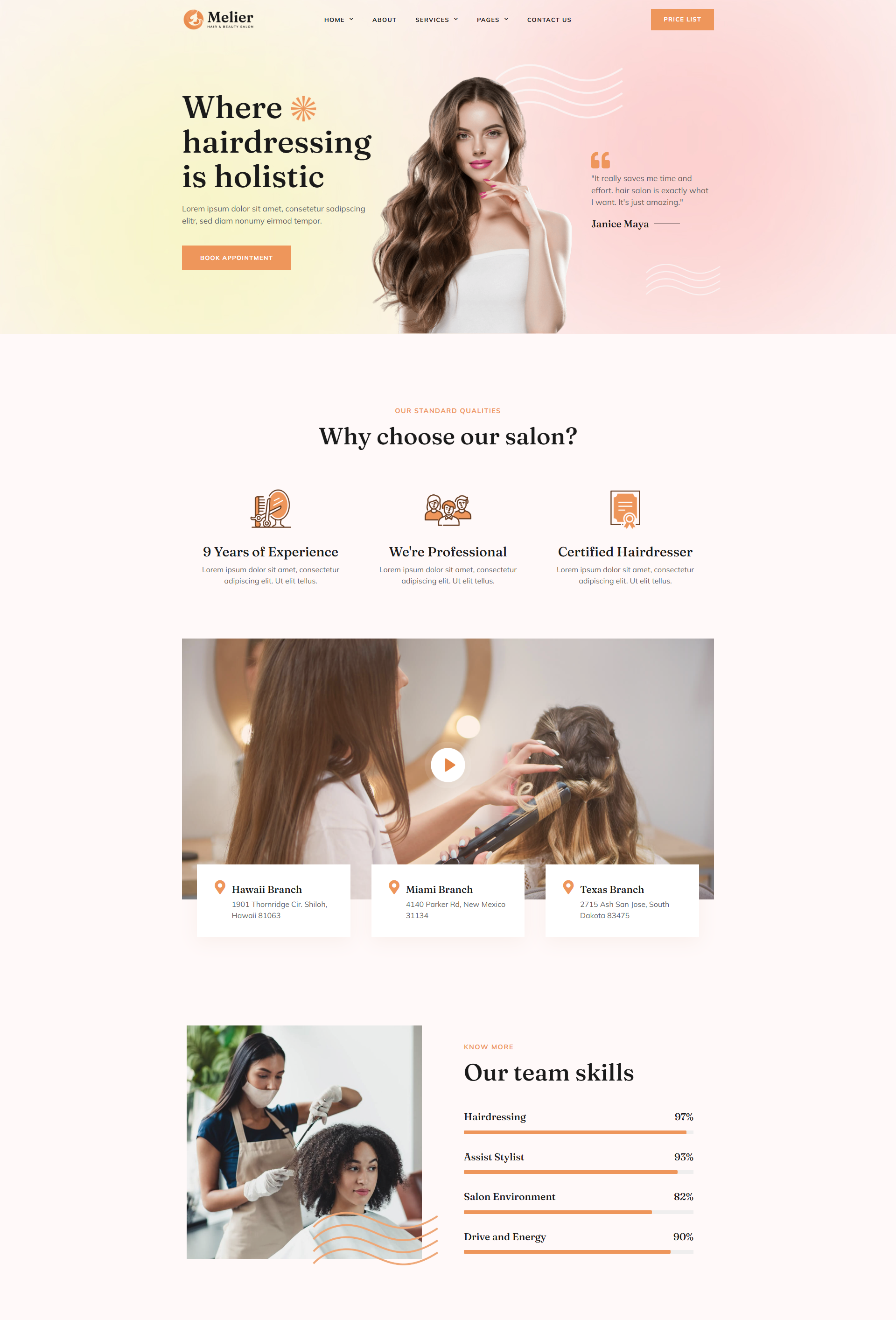 قالب عصري مصمم لصالونات التجميل وخدمات العناية.