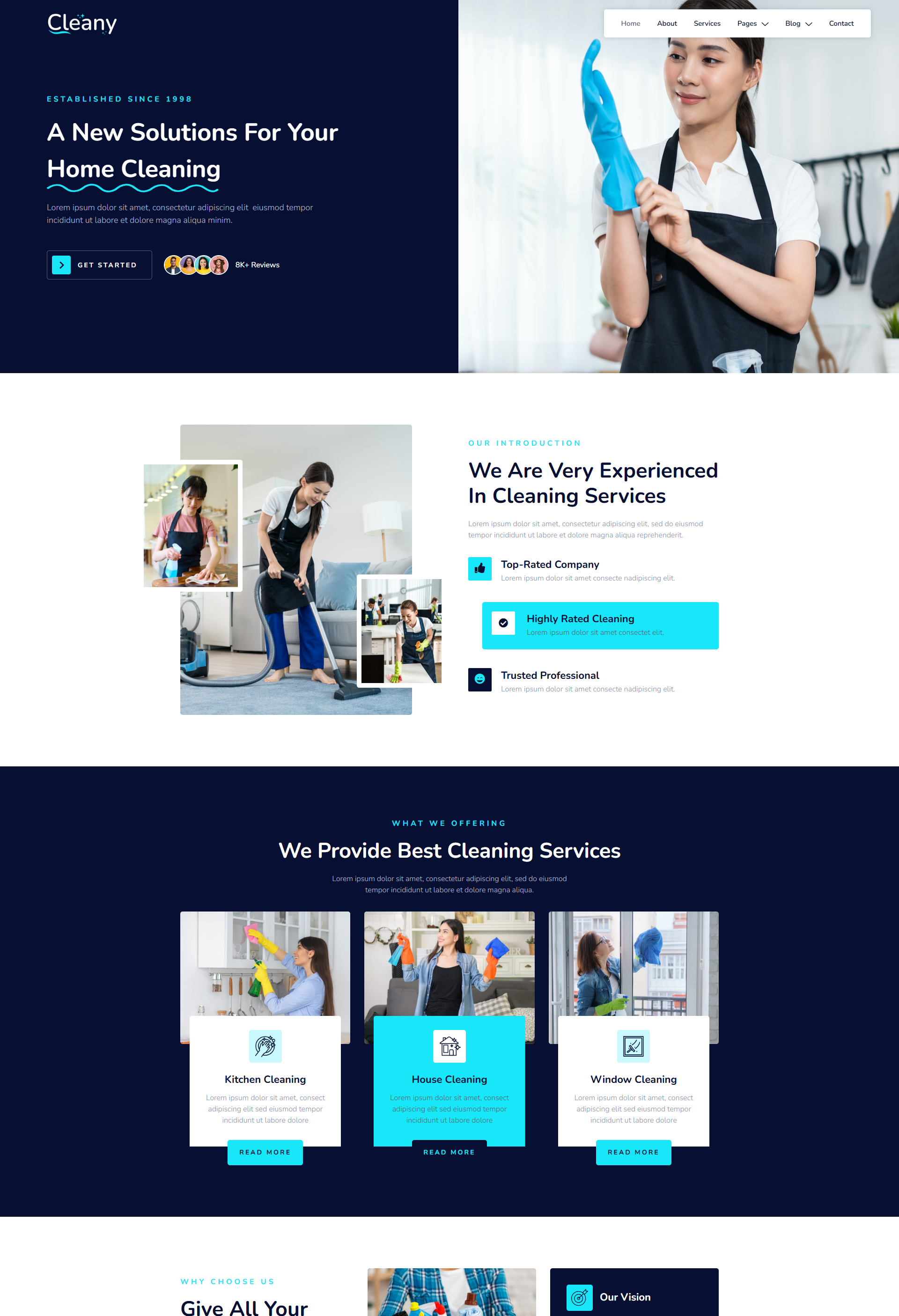 قالب مثالي لخدمات التنظيف مع واجهة سهلة الاستخدام.