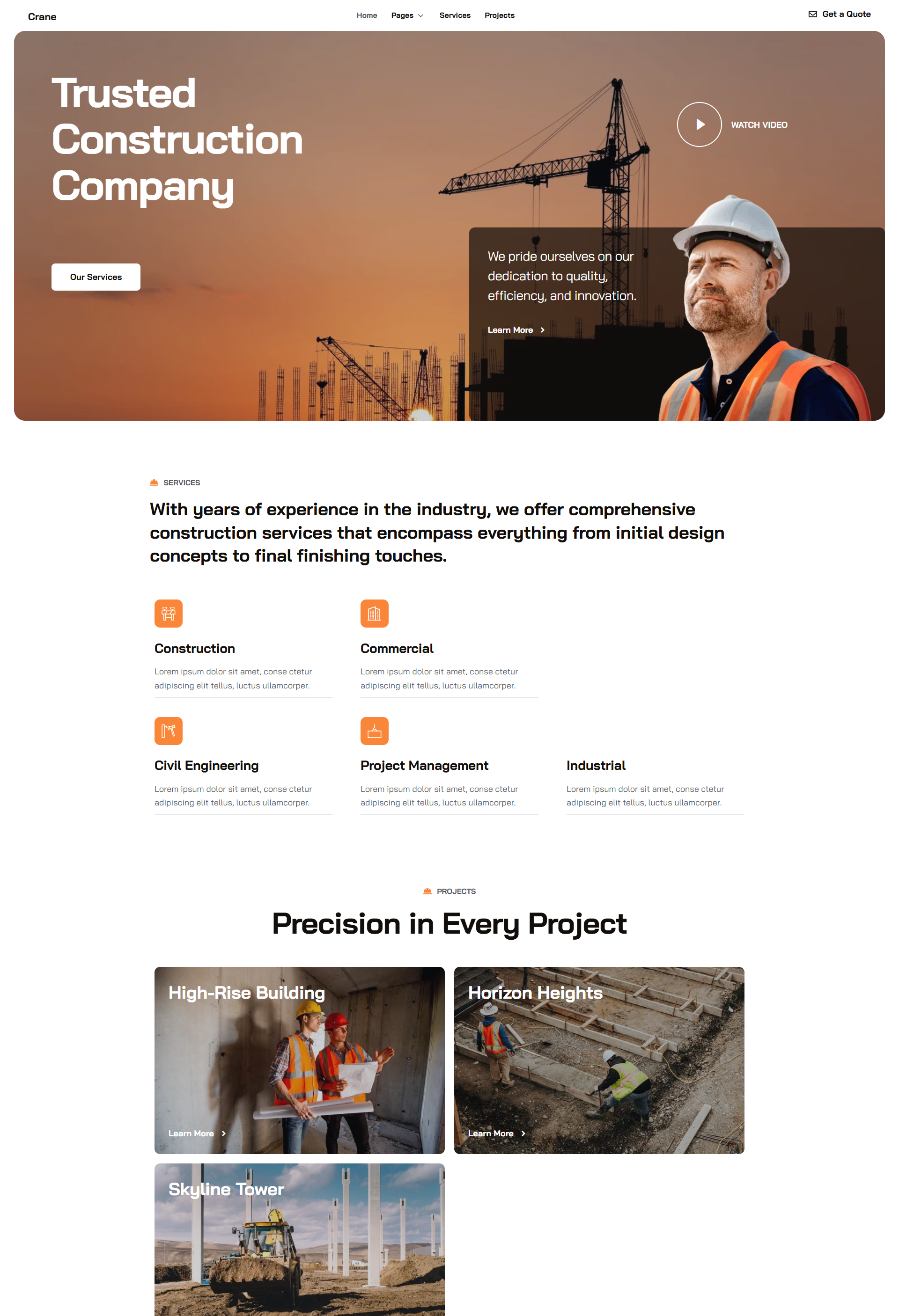 قالب احترافي للمشاريع الهندسية وشركات البناء.