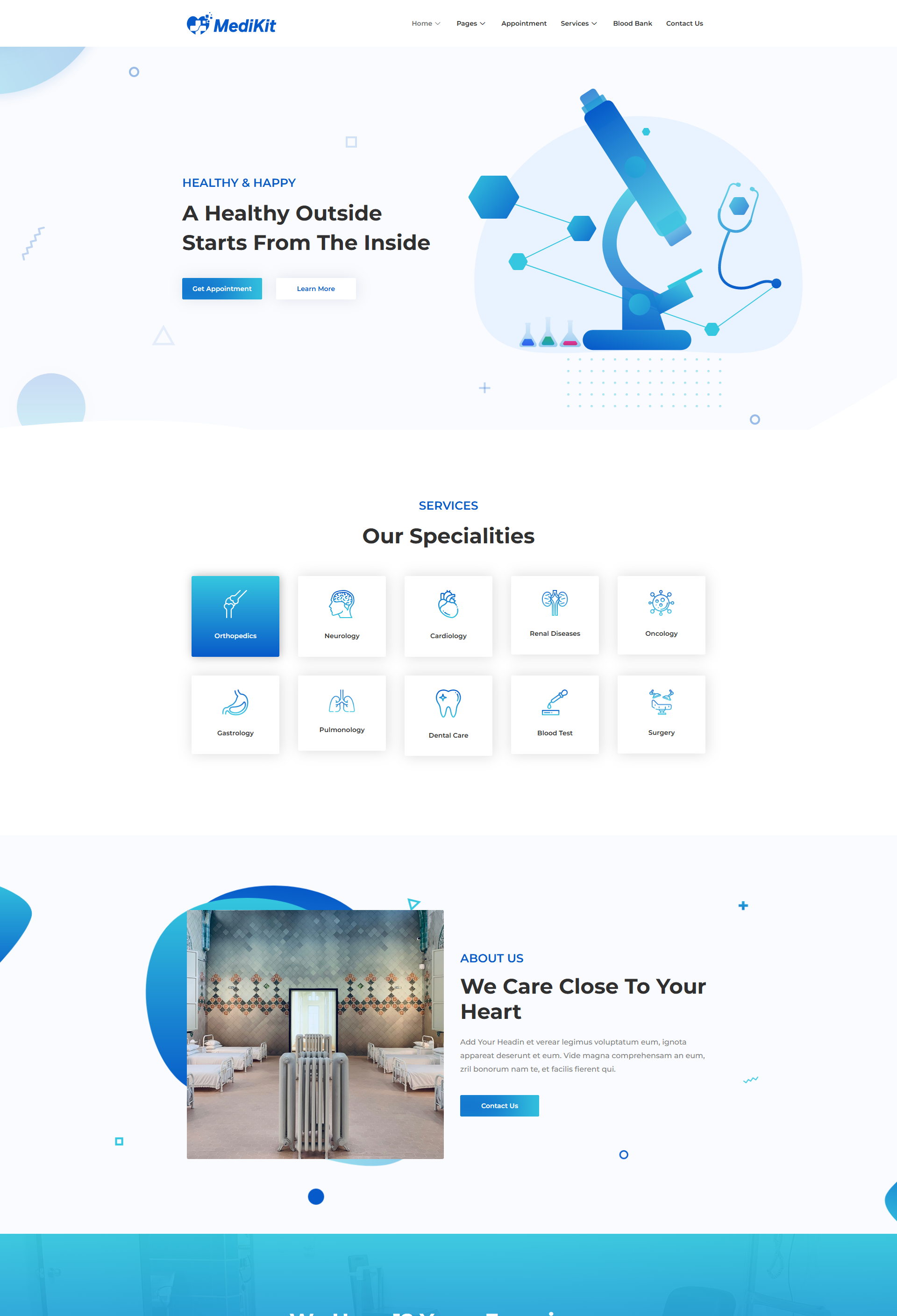 قالب عصري للعيادات والمستشفيات مع ميزات متقدمة.