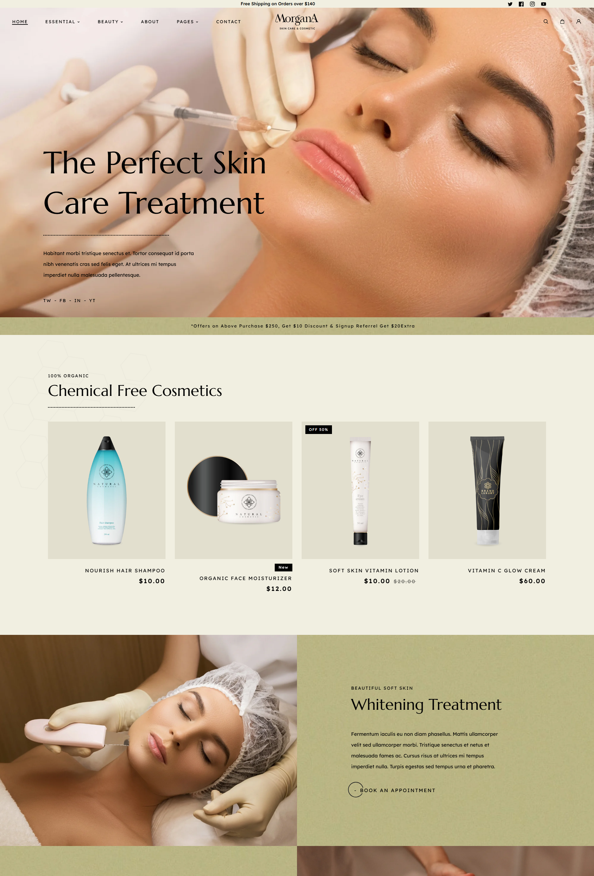 قالب حديث مناسب لمتاجر مستحضرات التجميل والعناية بالبشرة.