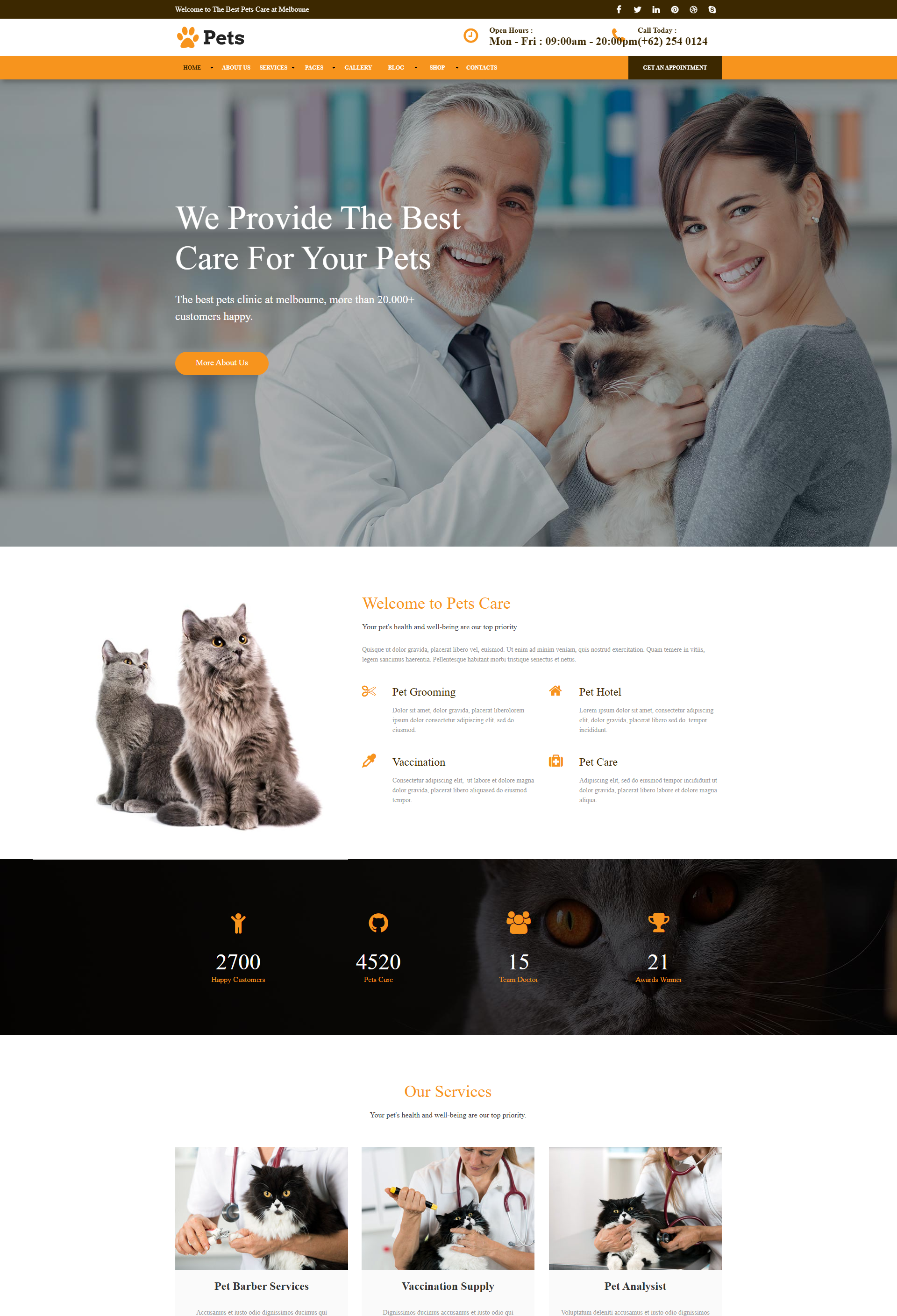 قالب مميز لمتاجر الحيوانات الأليفة والمستلزمات الطبية.